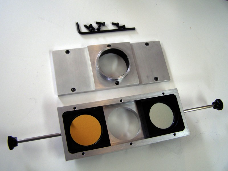 Finished Machined Parts Ready to assemble with Ha filter and OIII fillter in place |